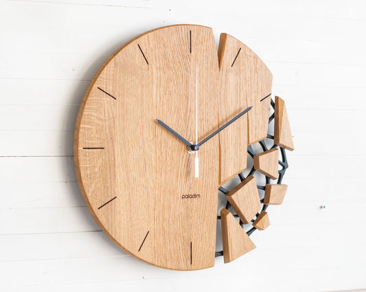 VREME shattered wall clock, oak