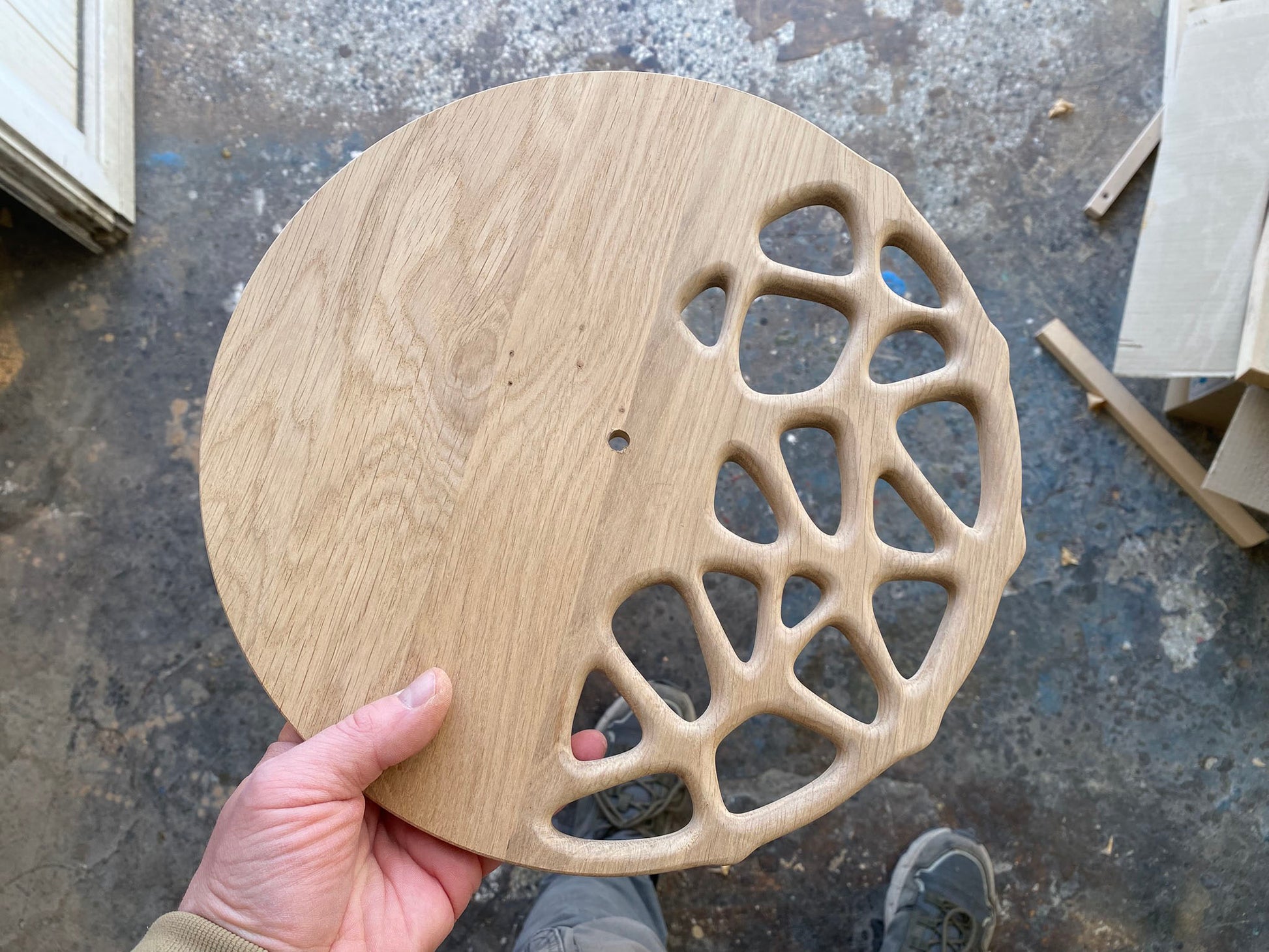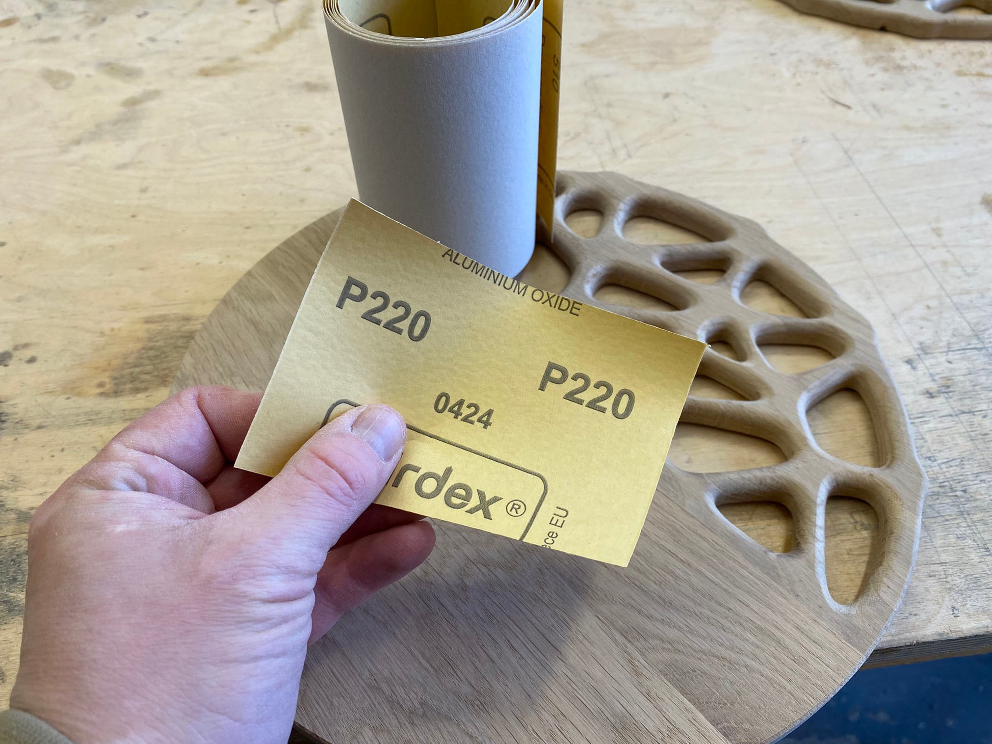I used a 320x320x13mm stock of oak wood. The thickness can be either 11mm or 13mm.